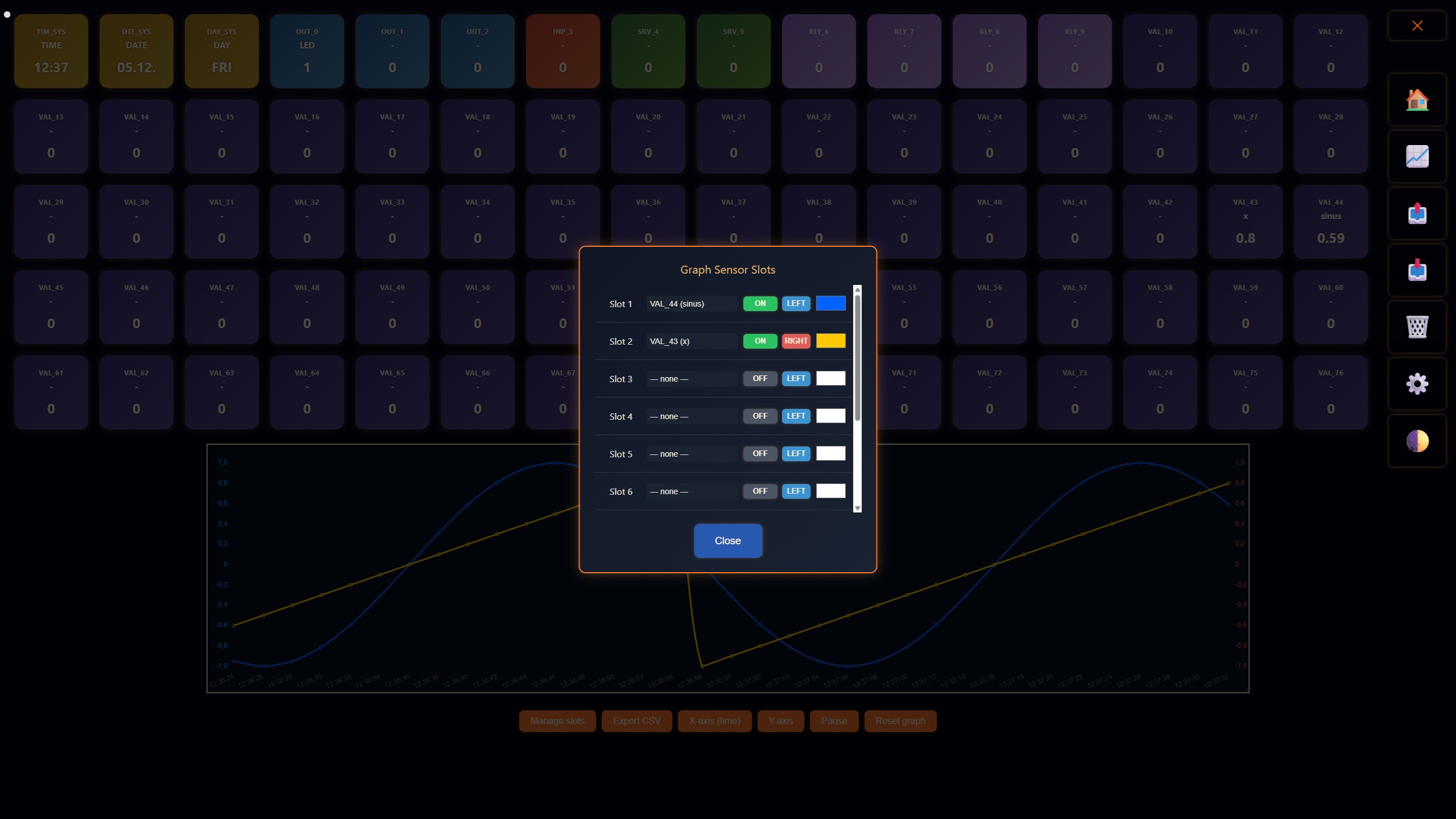 (OUT / INP / SRV / TMP and then a block of VAL_x objects).